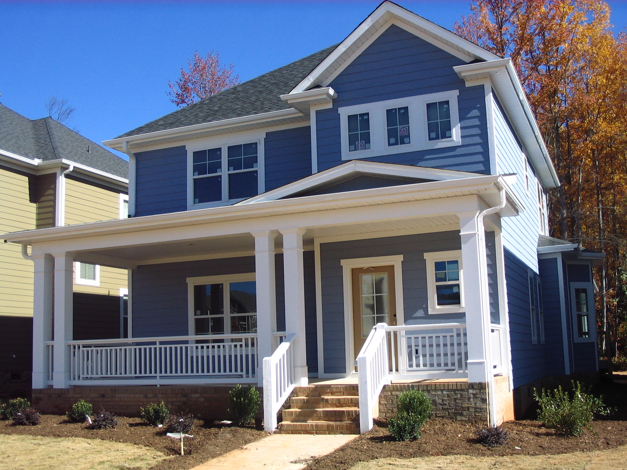 Complete The Front Of The House Including Aspects Such As Window Frames, Garage, Alarm, Front Door, Brickwork Etc.